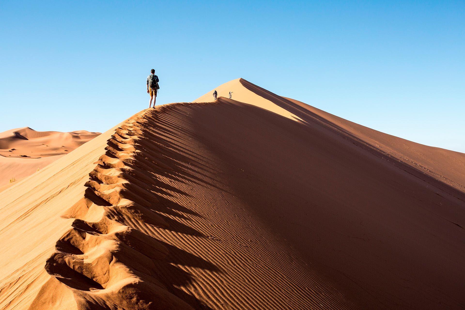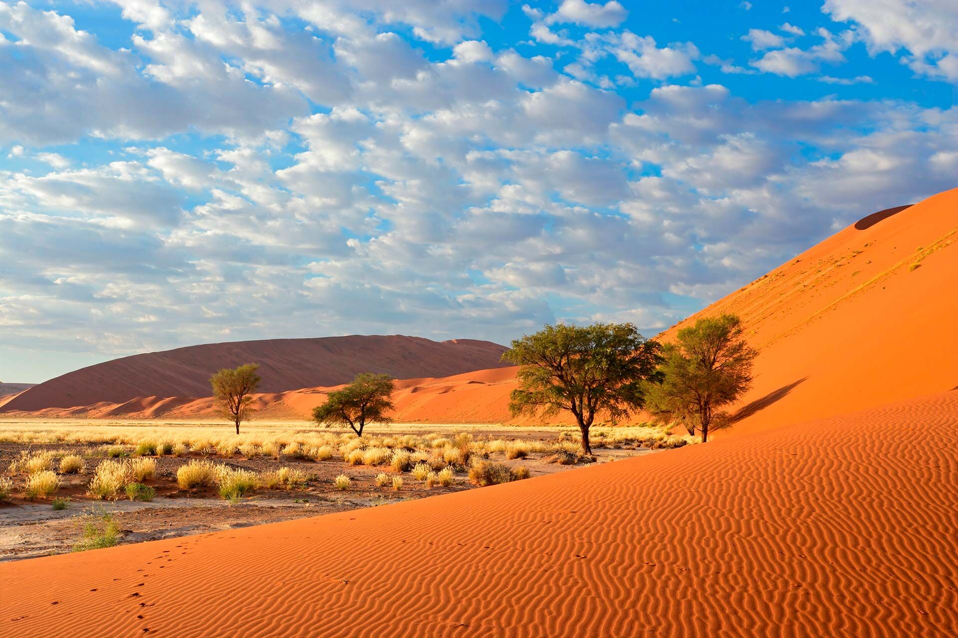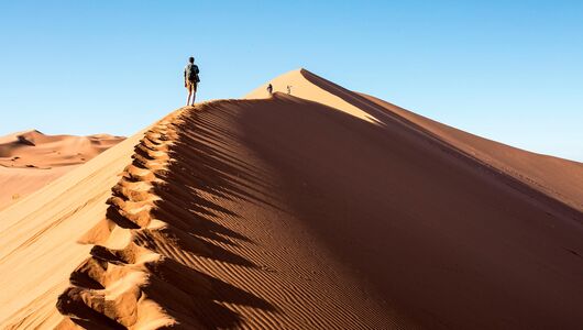 I dag er der god tid til at se de fantastiske op til 300 m høje klitter ved Soussusvlei og Deadvlei, men vi foreslår at man står rigtig tidligt op. Både ved solopgang og ved solnedgang er der et farvespil, som bare er helt uforglemmeligt, og husk endelig kameraet. Vi vil også anbefale, at man gør holdt for at opleve Sesriem Canyon, en imponerende kløft som blev skåret i klipperne for millioner af år siden af Tsauchab floden.