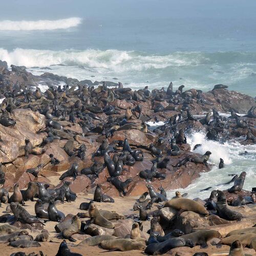 Langs Atlanterhavskysten fra grænsen til Angola og 500 km mod syd ligger Skeleton Coast Park, der beskytter kysten og de bagvedliggende ørkenlandskaber ca. 40 km ind i land. Parken har navn efter de mange hvalskeletter, der findes langs strandene, samt de omkring 1.000 skibsvrag. Flere af kystens små floddeltaer har et fint fugleliv og kan også blive besøgt af antiloper og rovdyr. Langs kysten findes adskillige store kolonier af pels-sæler, men den største på omkring 100.000 dyr, ligger dog lige syd for parken og ca. 150 km nord for Swakopmund i et lille reservat, der er oprettet for dem ved Cape Cross. Der er altid stor aktivitet i disse kolonier, hvor især de store hanner har voldsomme kampe for at forsvare deres små territorier. Kolonierne får med mellemrum ubudne gæster, idet brune hyæner, sjakaler og sågar løver kan komme på strandene for at gøre indhug i bestanden af pels-sæler.