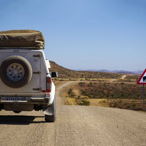 Namibia er en populær kør-selv-destination. Der er en god infrastruktur, omend hovedparten af vejene er grusveje, er de generelt af god kvalitet og velafmærkede. Namibia er meget tyndt befolket, så der er ikke meget trafik. Lange øde stræk i det dramatiske landskab, giver følelsen af frihed og indbyder til god musik på anlægget, mens man kan føle sig alene på jorden og lade tankerne drive.