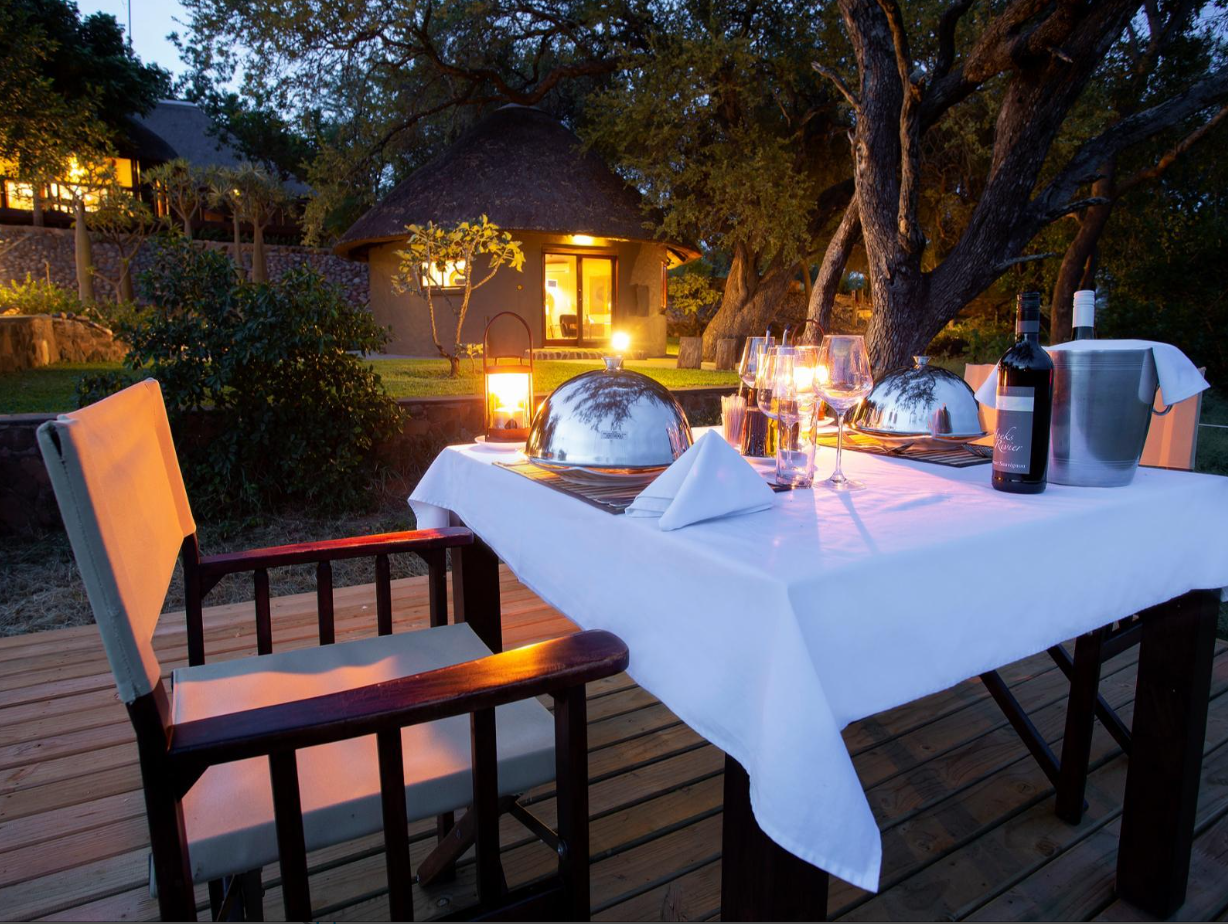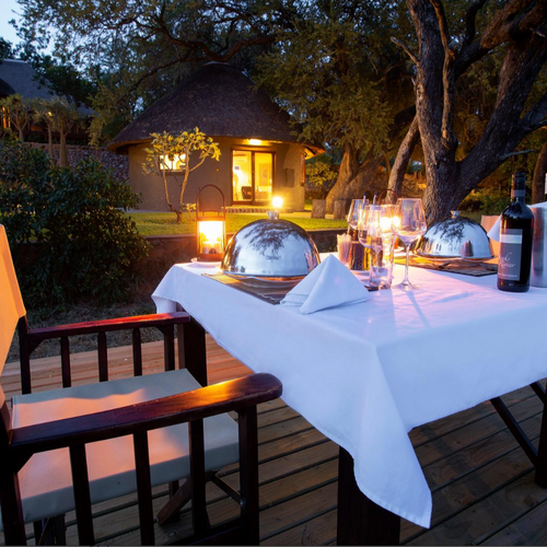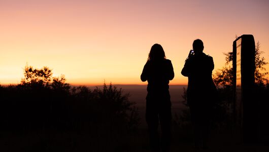 Undervejs gør vi holdt for at nyde solnedgangen og den klassiske "sundowner", mens vi nyder de fantastiske lyde og dufte fra bushen og dens planter og dyr, indtil turen går tilbage til lodgen, hvor middagen venter.