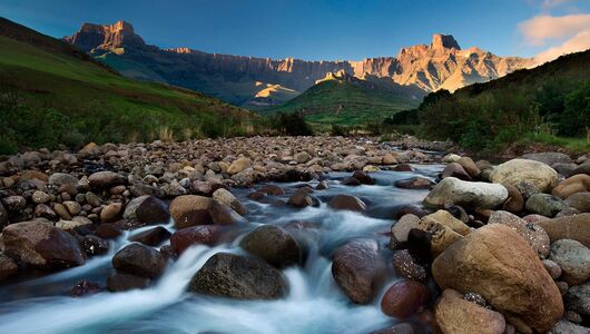 Vi kører nu længere ind i landet, hvor de næste to overnatninger foregår på The Cavern, der ligger i et 3.000 ha stort privat bjergreservat. Dette grænser op til Royal Natal National Park, som er en del af uKhahlamba Drakensberg Park, der ligeledes er udpeget som World Heritage. Parkens mest berømte lokaliteter er den 5 km lange og op til 1.200 meter høje klippevæg Drakensberg Amphitheatre, Mont-Aux-Sources toppen hvor Orange og Tugela floderne udspringer og det 947 meter høje Tugela vandfald, verdens næsthøjeste.