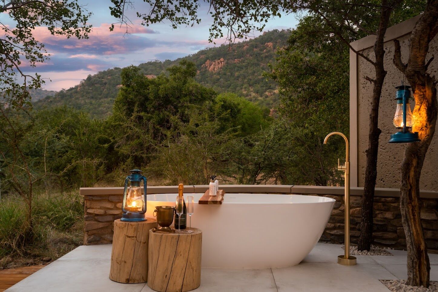 Denne private boutique lodge er en moderne lodge, der er designet til at passe godt ind i omgivelserne. Lodgen ligger i Black Rhino Game Reserve (vildt-reservat), en privat koncession indenfor den malariefrie Pilanesberg National Park. Lodgen og værelserne er af meget høj standard, og servicen på stedet er helt i top. Alle måltider og alle drikkevarer er inkluderet i rejsens pris. Hovedbygningen omfatter bar, spise/lounge-område, udendørs lounge samt terrasse med spiseborde og udsigt samt vinkælder. Desuden er der en såkaldt afrikansk boma. Bomaer blev oprindelig brugt for at beskytte husholdningens egne dyr mod vilde dyr, men navnet benyttes i dag for et udendørs spiseområde med en grill og et åbent ildsted. Der er desuden mulighed for mange forskellige wellness behandlinger (mod betaling).