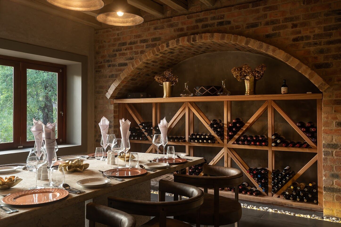 Hovedbygningen omfatter bar, spise/lounge-område, udendørs lounge samt terrasse med spiseborde og udsigt samt vinkælder. Desuden er der en såkaldt afrikansk boma. Bomaer blev oprindelig brugt for at beskytte husholdningens egne dyr mod vilde dyr, men navnet benyttes i dag for et udendørs spiseområde med en grill og et åbent ildsted. Der er desuden mulighed for mange forskellige wellness behandlinger (mod betaling).