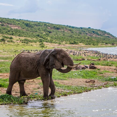 Ad Kazinga-kanalen, sejler vi ind i Queen Elizabeth Nationalparks. Her møder vi store dyr såsom elefant, løve og bøffel. Fuglelivet er også rigt og turen er fredfyldt, så vi i ro og mag, kan nyde og indtage de mange indtryk. Det er indtryk der sætter aftryk og sådan er det med Uganda.