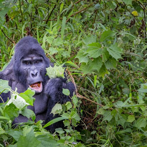 Vi mødes af en erfaren guide, der er vant til at færdes i parken. Vi har stor respekt og nænsomhed overfor gorillaerne, som lever i deres naturlige habitat. Lokale ”scouts” har tidligt på morgenen spottet hvor gorillaerne holder til og vi kan derfor være sikre på, at få øje på og måske komme helt tæt på dem.