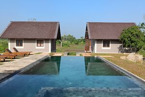 Beliggende blot 3 km fra indgangen til Wilpattu National Park ligger Claughton Wild Wilpattu, en hyggeligt Lodge med 5 dejlige rummelige værelser. Mange steder i Sri Lanka er badeværelset udendørs, selvfølgelig helt privat, men under åben himmel og det er også tilfældet her. Værelserne er smagfuldt indrettet og selvfølgelig med toilet og koldt/varmt vand i bruseren. Ved lodgen forefindes swimmingpool, så man har mulighed for at få safaristøvet vasket af. Logden er omgivet af smukke rismarker og små søer.Beliggende blot 3 km fra indgangen til Wilpattu National Park ligger Claughton Wild, et hyggeligt Lodge med 5 dejlige rummelige værelser. Mange steder i Sri Lanka er badeværelset udendørs, selvfølgelig helt privat, men under åben himmel og det er også tilfældet her.