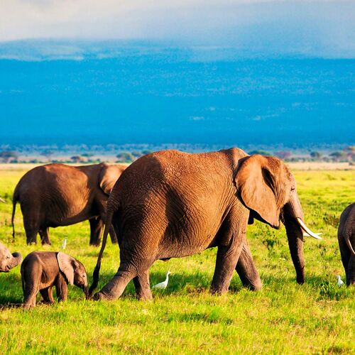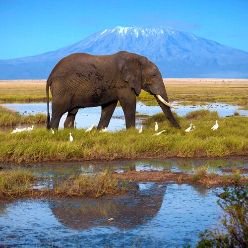 Flere nationalparker i det sydlige og sydøstlige Kenya har i klart vejr en fin udsigt til Kilimanjaros sne- og isklædte top, der ligger umiddelbart syd for grænsen til Tanzania. Amboseli er nok mest kendt for denne udsigt, da parken ligger tættest på bjerget med kun godt 40 km til toppen, men den er også berømt for at rumme mange let synlige elefanter, hvoraf adskillige er store flotte eksemplarer med ualmindeligt store stødtænder. Der findes omkring 700 elefanter i Amboseli og disse er blevet studeret intensivt i mere end 40 år af adfærdsforskere.