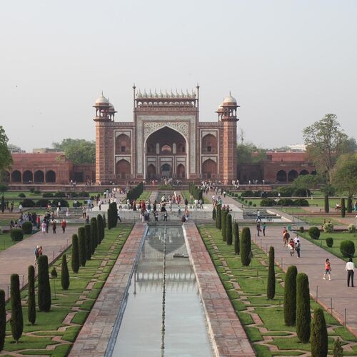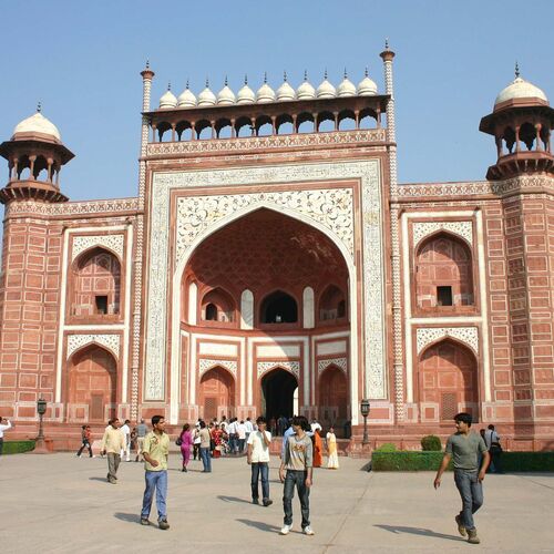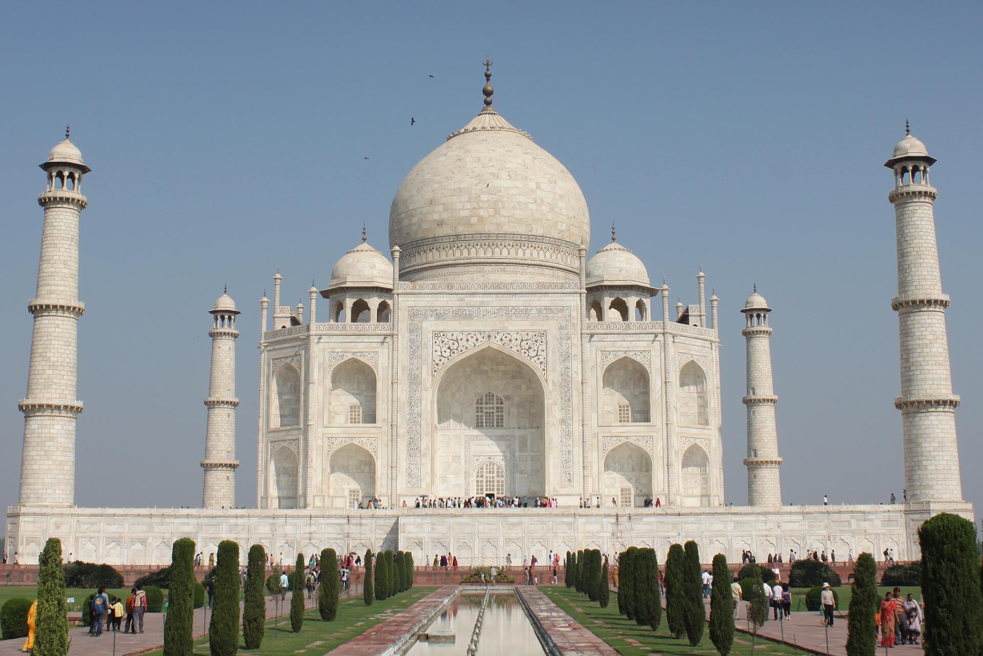 Taj Mahal blev opført i midten af 1600-tallet som et gravmonument for kejser Shah Jahans kone, Mumtaz Mahal, der døde under fødslen af deres trettende barn. Der måtte en arbejdsstyrke på 20.000 mand i 22 år til at opføre dette betagende byggeri, hvilket man bedre forstår, når man kommer tæt på monumentet, der er bygget af smuk hvid marmor og overdådigt udsmykkede med enorme mængder af ædelsten.