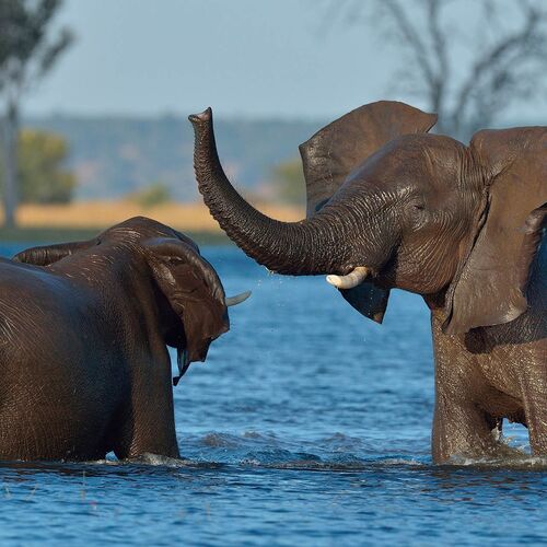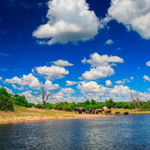 Omkring halvdelen af Botswanas imponerende bestand på mere end 100.000 elefanter lever i Chobe, hvilket tydeligt ses på mange af træerne, som de er hårde ved i jagten på friske blade og bark. Sammen med de nærmeste omgivelser udgør dette simpelthen Afrikas største elefantbestand – og dermed verdens største. Det er generelt muligt at komme rigtig tæt på elefanterne såvel på land som fra vandsiden. Langs og i floden ses desuden masser af flodheste samt store flokke af bøfler, der nogle gange kan bestå af mere end 1.000 dyr. Disse er de lokale løvers yndlingsbytte, men jagten er typisk henlagt til den tættere vegetation lidt væk fra floden. Der findes også mange andre store planteædere, bl.a. stor kudu, roan-antilope, sabel-antilope og impala.