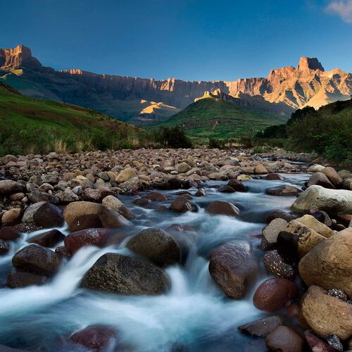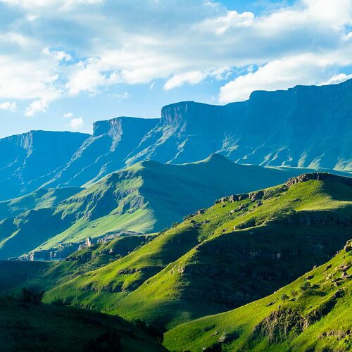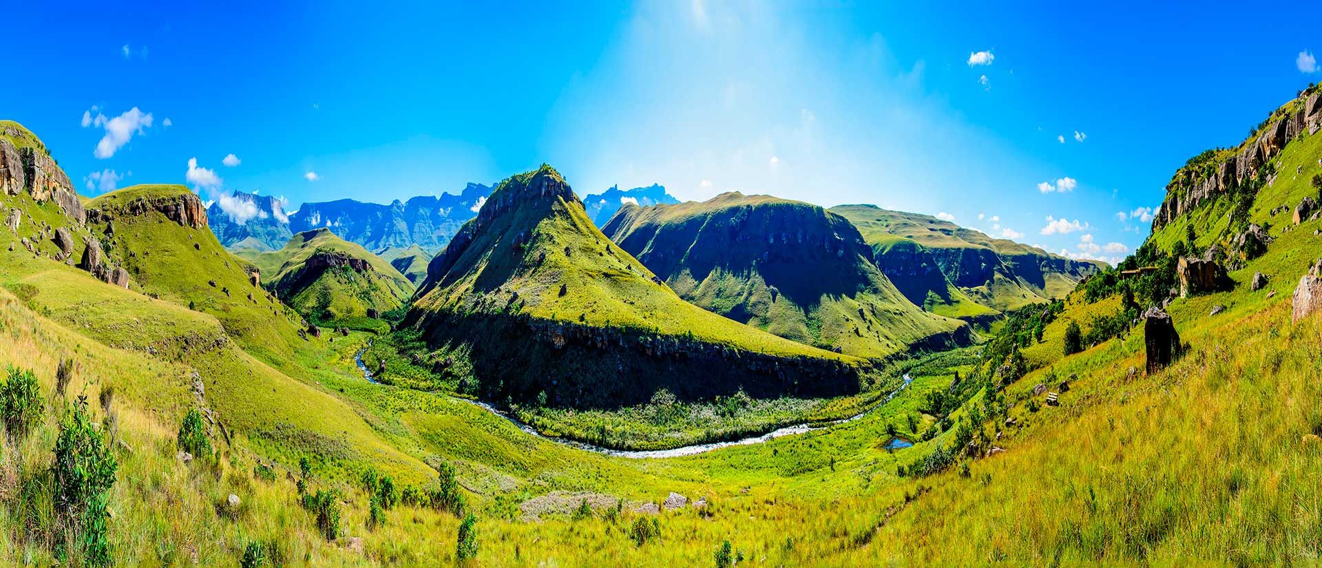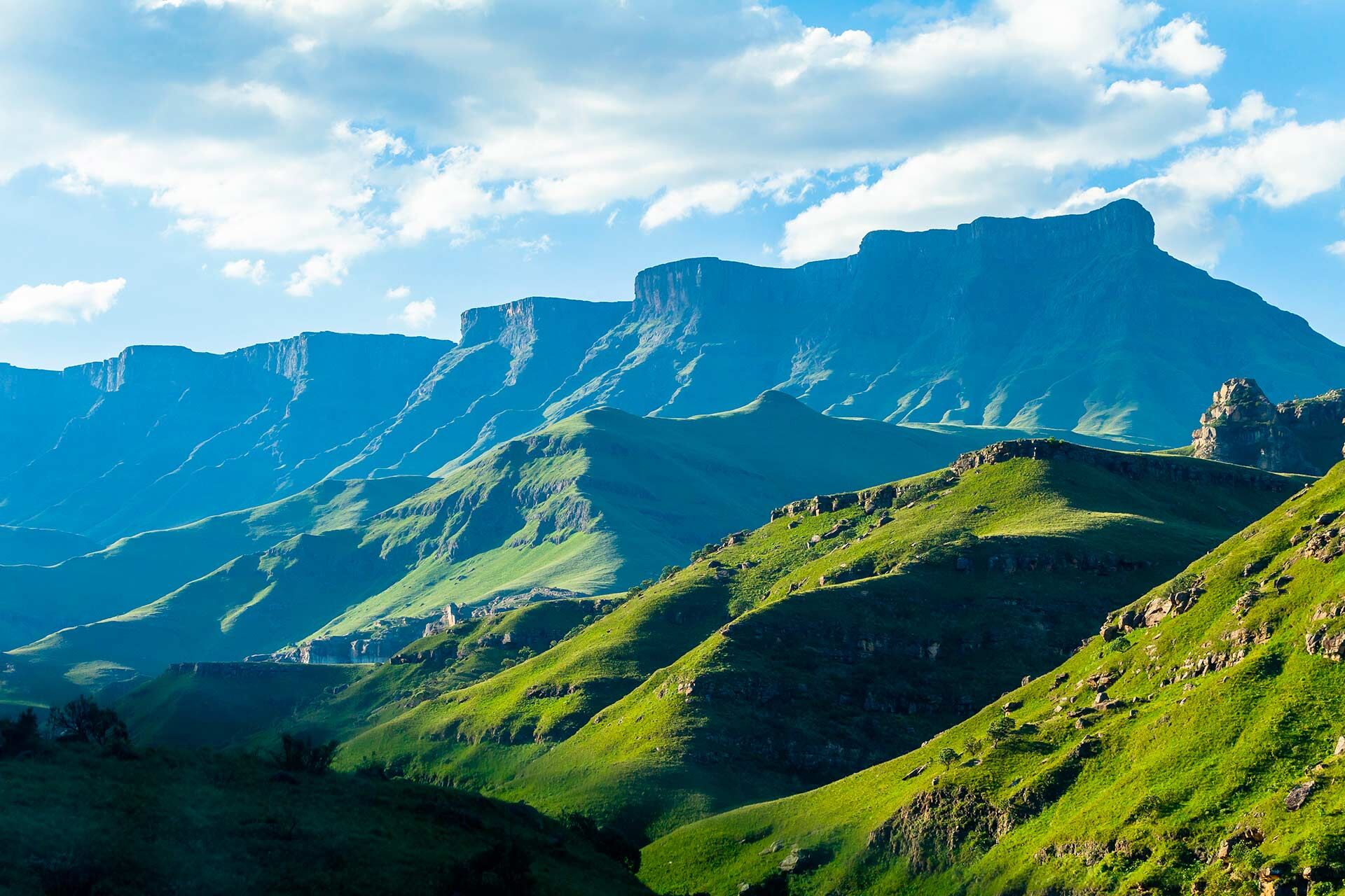 Ved Sydafrikas østkyst ligger bjergkæden Drakensberg, som dækker over 250.000 hektar. Det højeste punkt på Drakensberg er Thabana Ntlenyana, der rækker hele 3.482 meter op i luften. Drakenbjergene er et absolut must at se, hvis man er glad for vandring, klatring eller hvis man vil studere et spændende og delvist endemisk fugleliv. Området er særlig kendt for sin dramatiske natur og enorme skønhed. I år 2000 blev området udnævnt til et verdensnaturarvsområde, bl.a. for dets bemærkelsesværdige bjergkunst, som vidner om San-folkets levemåde og trosforestillinger.