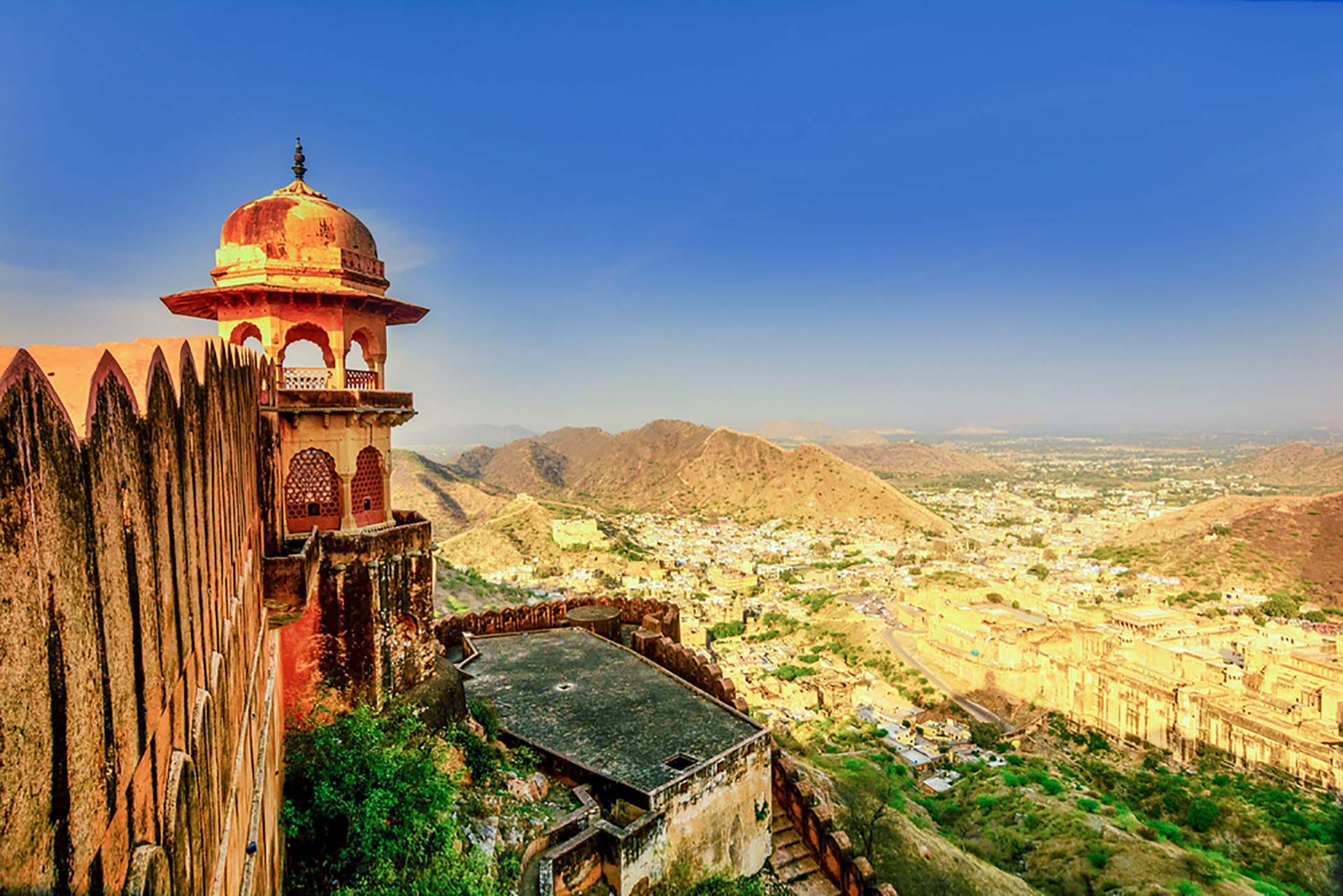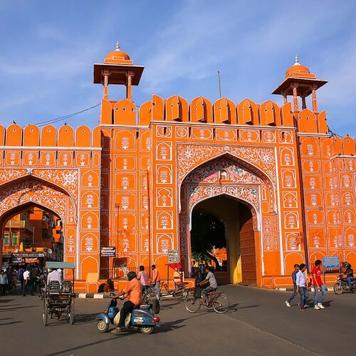 Jaipur er den travle hovedstad i Indiens største og ørkendominerede delstat Rajasthan og har næsten 3 mio. indbyggere. Den er også kendt under navnet ”Den Lyserøde By”, da mange af de historiske bygninger i den gamle bydel er malet i den traditionelle velkomstfarve, hvilket oprindeligt blev gjort i anledning af dronning Victorias mand prins Alberts besøg i 1883. Den gamle bydel omkranses af en bymur med syv porte der stadig er i brug, og den rummer en række meget smukke og spektakulære bygninger af en kaliber så masser af turister valfarter til byen for at se dem.