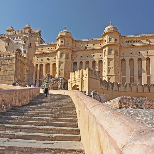 På en bakketop ca. 11 km nord for Jaipur ligger det imponerende Amer Fort i den lille by af samme navn. Den store, meget flot udsmykkede og yderst velbevarede fæstning er optaget på UNESCO´s liste over verdensarv sammen med fem andre fæstninger i Rajasthan. Mange turister rider det sidste stykke op til Amer Fort på elefanter, men fra Safari Eksperten anbefaler vi at gå, da vi ikke mener at elefanter skal holdes på den måde som der gøres her, hvor de lever mange tæt sammen i bymæssige omgivelser og i varmt og tørt klima.