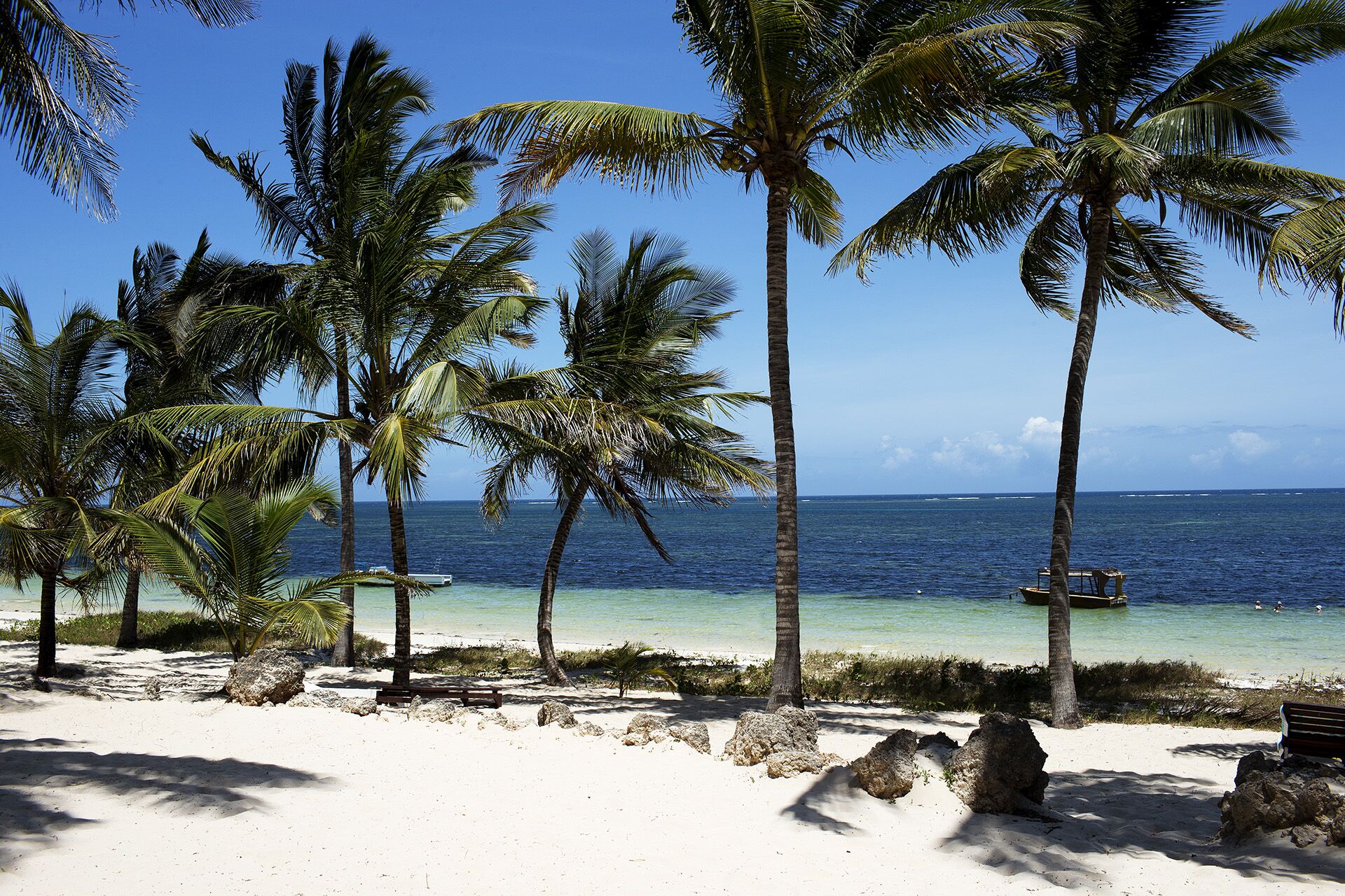 På de smukke kyster lige syd for ækvator omkring havnebyen, Mombasa, og ikke mindst på sydkysten fra den berømte strand, Diani Beach, og sydpå findes mange dejlige strandhoteller. Området er som skabt til en afslappende badeferie efter en oplevelsesrig safari, men her er desuden masser aktivitetsmuligheder såvel til lands, som til vands og sågar i luften. Området har tre golfbaner, hvor især de to 18-hullers er af høj kvalitet, og der er talrige muligheder for at spille tennis på glimrende baner. Det skal dog nævnes, at der generelt er meget tidevand i Afrika og derfor vil der være tidspunkter på dagen, hvor havet er flere hundrede meter væk og tidspunkter på dagen, hvor vandet kommer helt tæt. Poolen vil derfor også ofte tages i brug i løbet af dagen.