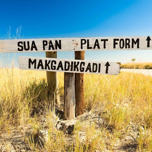 De to nationalparker, der rummer nogle af verdens største saltsletter samt den tørre savanne med spredte smukke palmer og baobabtræer omkring, er delt af en øst-vestgående asfalteret hovedvej. Ad denne er der godt 160 km til byen Maun, der rummer en lille international lufthavn.