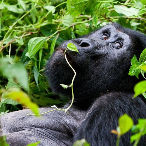 Det er muligt at besøge gorillagrupper med de gigantiske førerhanner, de såkaldte sølvrygge. De kan nå en størrelse på næsten to meter i højden og imponerende 220 kg. På gorilla-trekking i Rwandas og Ugandas vestlige højland er det den langpelsede bjerggorillaen, som besøges, mens den lidt mindre og mere korthårede lavlandsgorilla findes mod vest i Centralafrikas regnskove. De planteædende gorillaer har, trods deres størrelse, et roligere gemyt end chimpanser. For de fleste der har prøvet det, er det en stor følelsesmæssig oplevelse for livet, at have siddet midt i en familiegruppe af gorillaer og set ind i deres blide brune øjne. Selvom reglen er, at man ikke må gå tættere på gorillaerne end 7 meter, sker det alligevel ofte, idet gorillaerne åbenlyst ikke kender reglen, eller ved hvad en meter er!