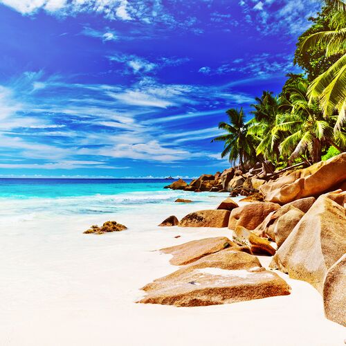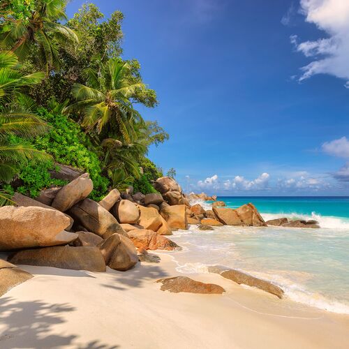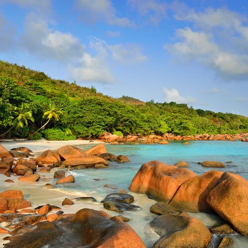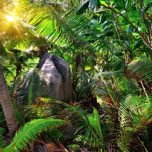 Praslin, som er Seychellernes næststørste ø, kaldes også for palmernes Ø. Her finder du de sjældne coco de mer palmer med kokosnødder helt op til 26 kilo.