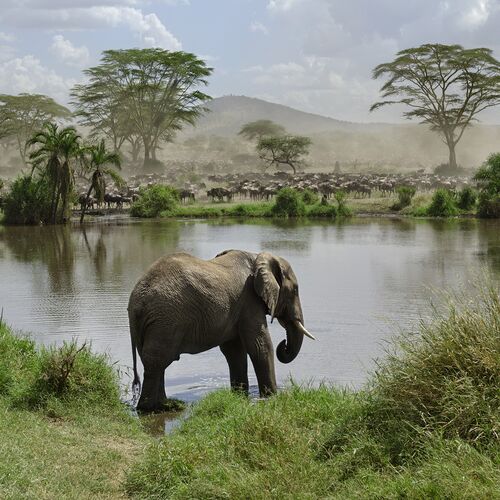 Nationalparken aspirerer utvivlsomt til en af verdens mest kendte – og med rette. Det næsten endeløse ocean af græs med savannens store dyreflokke er måske mere end noget billedet, som de fleste forbinder med det klassiske Afrika safari – og dette selvom busk- og træsavannen faktisk dækker en meget større del af kontinentet. Utallige TV udsendelser fra området må holdes ansvarlige for dette. Mest af alt er Serengeti nok kendt for de store dyreflokkes vandring, The Great Migration, hvor især næsten 1,5 million gnuer og en kvart million zebraer vandrer rundt i konstant søgen efter de bedste græsgange. Denne vandring har et overordnet mønster som gentages år efter år, selvom rute og årstid kan variere noget afhængig af hvor og hvornår regnen falder.
