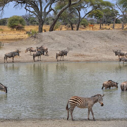 Migrationen deles i det nordlige Serengeti med Masai Mara i Kenya, hvor den typisk befinder sig i de fire tørreste måneder, juli til oktober. Indbegrebet af migrationen er når den krokodillefyldte Maraflod skal krydses, hvilket ofte kan give dramatiske begivenheder. Dette drama kan opleves i det nordligste Serengeti samt i Masai Mara. Et andet højdepunkt er når gnuerne på få uger i vores vintermåneder føder mere end en kvart million kalve på de kortgræssede sletter i det sydlige Serengeti, hvilket også skaber store dramaer.